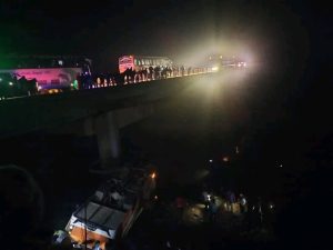 राप्ती नदीको पुलबाट यात्रु बाहक बस खस्यो