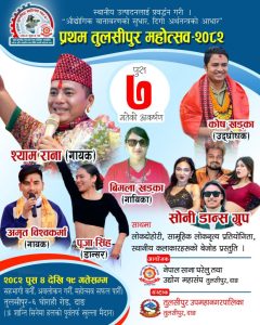 महोत्सवमा सोमबार चर्चित गायक श्याम राना लगायतका कलाकार आउँदै छन् । गायक रानासहित अमृत विश्वकर्मा, गायिका विमला खड्का लगायतका कलाकारको प्रस्तुति रहने महोत्सव आयोजक नेपाल घरेलु तथा साना उद्योग महासङ्घ तुलसीपुरका महासचिव भद्र बहादुर वलीले जानकारी दिए । महोत्सवमा स्थानीय कलाकारको पनि प्रस्तुति रहनेछ । महोत्सवमा सोनी डान्स ग्रुपको पनि प्रस्तुति रहने आयोजकले जनाएको छ ।